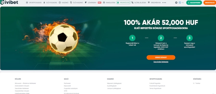 Ha számodra a sportfogadás a fontosabb, akkor az Ivibet sportos belépő ajánlata a jobb választás. A hivatalos sportoldal kivonata szerint ez egy 100%-os befizetés-megfelelő bónusz, maximum 52 000 Ft értékben. Ez egy klasszikus, könnyen érthető ajánlat: első befizetés után nagyobb egyenleggel indulhatsz, ami különösen jól jöhet akkor, ha kombi fogadásokban, élő fogadásokban vagy napi piacokban gondolkodsz. Az ilyen típusú bónusz azért erős, mert az első időszakban több lehetőséget ad a számládon anélkül, hogy rögtön csak a saját befizetésedre kellene támaszkodnod.