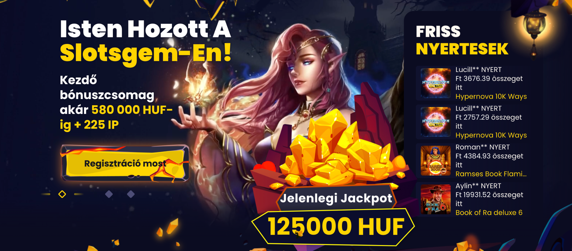 A SlotsGem Kaszinó első ránézésre is egy modern, látványos és kifejezetten szórakoztató online kaszinó benyomását kelti. A platform erősen a kaszinós élményre épít, nem sportfogadási oldalnak készült, hanem azoknak szól, akik a nyerőgépeket, az élő osztós játékokat és a klasszikus asztali játékokat keresik egy helyen.